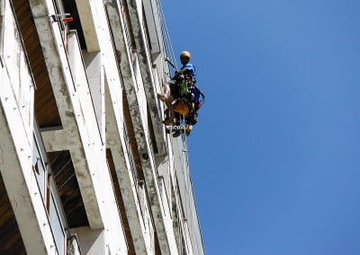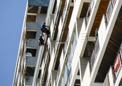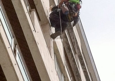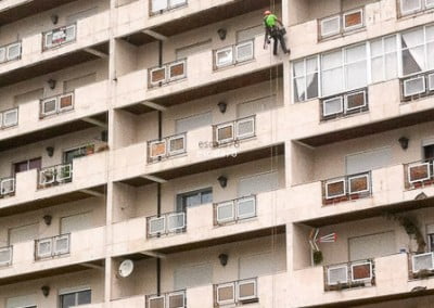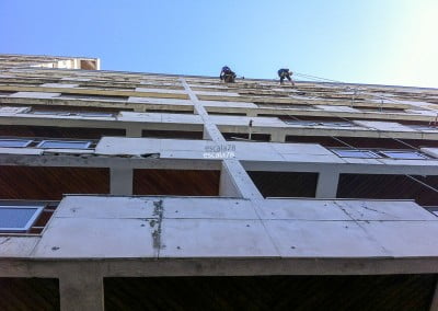 Póvoa do Lanhoso | Fixação mecânica de fachada em pedra utilizando varão roscado fixo com bucha química e posterior aperto de porca